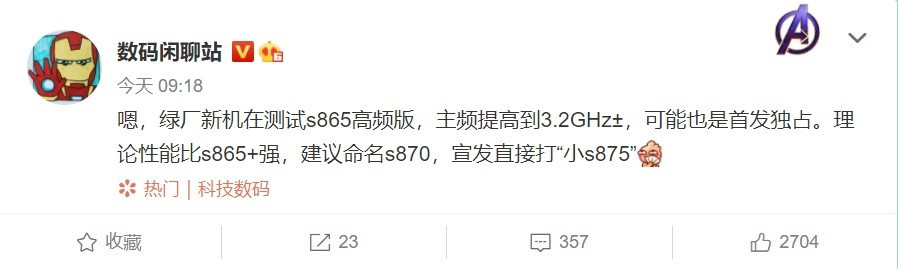 有消息称,OPPO 正在测试骁龙 865 的高频版,频率提升到了 3.2GHz。据数码博主 @数码闲聊站 爆料,OPPO 新机在测试骁龙 865 高频版,主频提高到 3.2GHz±,可能也是首发独占,理论性能比骁龙 865 + 强。