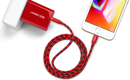 红色充电头+苹果MFi认证iPhone充电线,搭配上红色iPhone 8,完美搭档。苹果MFi认证品质,确保充电安全,不弹窗。2.4A智能充电接口,可以自动识别红色iPhone 8,确保充电效率达到最大。
