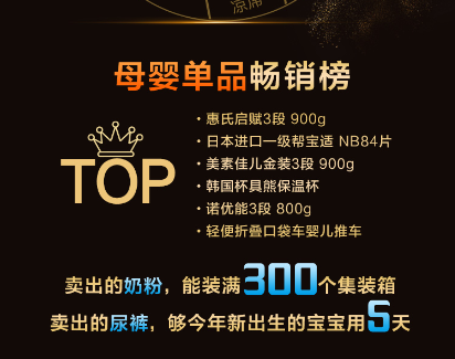 从地域来看,南京、重庆、上海、广州位列618最败家城市榜单。但不论买啥,宝爸宝妈还是更倾心大品牌:惠氏、雀巢、达能奶粉最受宝妈欢迎,其中惠氏奶粉6小时卖出30万罐,傲视群雄成为销售冠军;帮宝适、好奇、花王位列尿裤畅销榜,618卖出的尿裤总量够所有的新生宝宝使用5天。