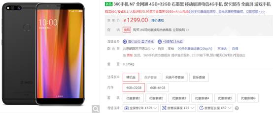 硬件方面,据了解,360手机N7搭载了高通660处理器,有4 32GB、6 64GB和6 128GB三种内存组合可选,售价分别为1299元、1699元、1899元;5.99英寸2160×1080P全面屏,屏占比高达84.5%;5030mAh超大容量电池,正常用机环境下可轻松续航三天,同时支持18W快充技术,半小时可充电量40%,115分钟可完全充满。在用户较为关心的拍照方面,则使用了前置800万、后置1600万 200万像素三摄设计,整体性能强悍,续航优异,是目前全面屏阵营中为数不多性能全面“水桶机”之一。