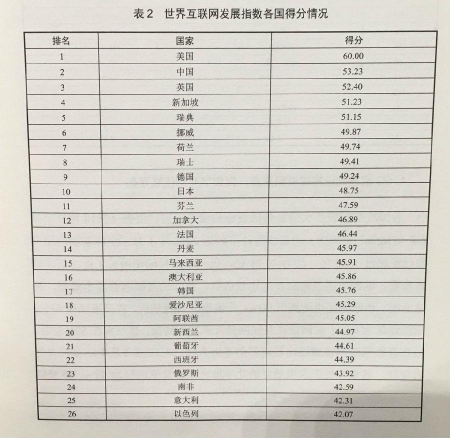 记者从发布会上获悉,在2018世界互联网发展指数排行中,中国排名第二。该指标体系在去年38个国家的基础上,新增了7个国家,涵盖五大洲的主要经济体和互联网发展具有代表性的国家,能够基本反映当前各大洲和世界主要国家的互联网最新发展状况。