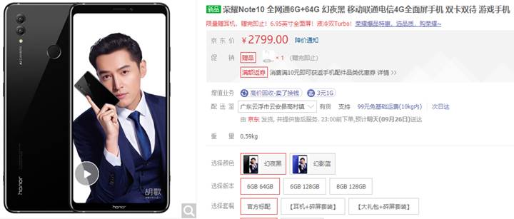 其他方面,荣耀Note10搭载了麒麟970处理器,有6+64GB、6+128GB和8+128GB三种内存版本可选,近期售价分别为2799元、3199元和3599元。配合GPU Turbo、CPU Turbo等新技术,整体性能均衡。