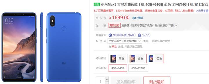 硬件配置方面,小米Max3搭载了高通骁龙636处理器,虽然性能稍显不足,但应付日常应用没有太大问题,同时提供了4GB和6GB两种运存版本,其中4+64GB版售价1699元,6+128GB版1999元。