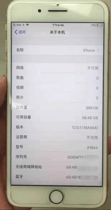关于机身信息的显示是256G的iPhone8P,系统升级到12的版本了,看不出来有什么问题,我们进一步查询一下看看。