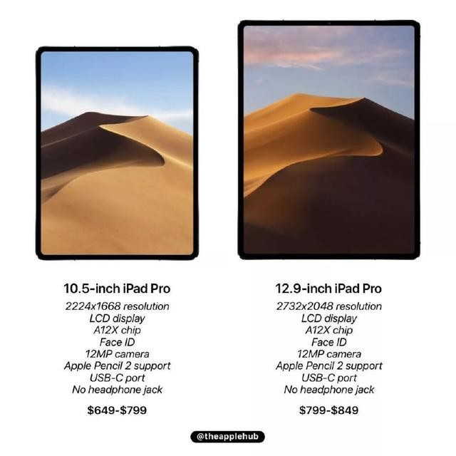 这的新版iPad Pro将会有10.5英寸和12.9英寸两个版本,其规格分别为247.64×178.52mm和280.66×215mm。这都要比现在两个版本的iPad Pro体积要小。机身厚度方面,10.5英寸版本厚度将会变成5.86mm,因为机身太薄,所以将取消3.5mm耳机接口。