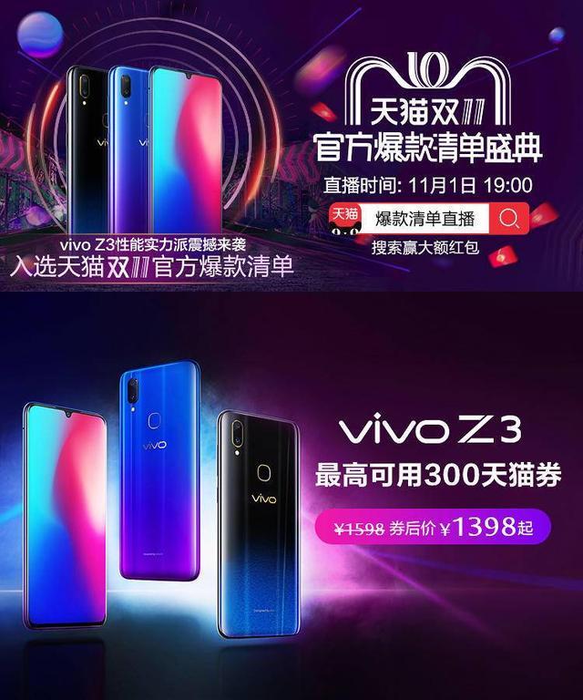 最让人激动的便是在双11天猫购物中也迎来降价活动,购买vivo Z3领券后最高直降300元!也就是说价格低至1398元,现在便是最好入手时期。