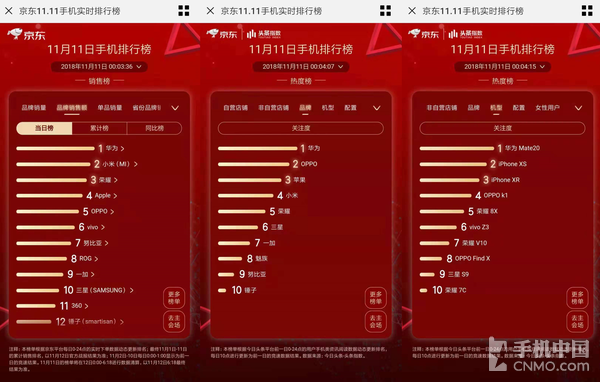 今年双十一期间,华为手机拿出了空前的优惠力度,华为Mate 10 Pro在天猫、京东等平台有着500元起的优惠,而新上市的华为Mate 20和Mate20 X也有六期免息的优惠政策。在双十一的凌晨0点3分,华为手机轻松取得了品牌销售额、品牌以及机型三大榜单第一。