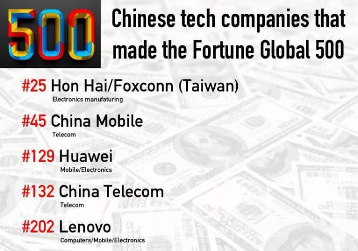 但是如果我们对比一下三星和华为世界五百强的排名,就可以看到华为和三星还有不小的差距。三星在2016年在世界500强排到第15位,营业收入更是达到1800亿美元。而华为只排到了129位,营业收入也只有785亿美元,是三星的一半不到。而这,已经是中国科技企业第3高的排名了!