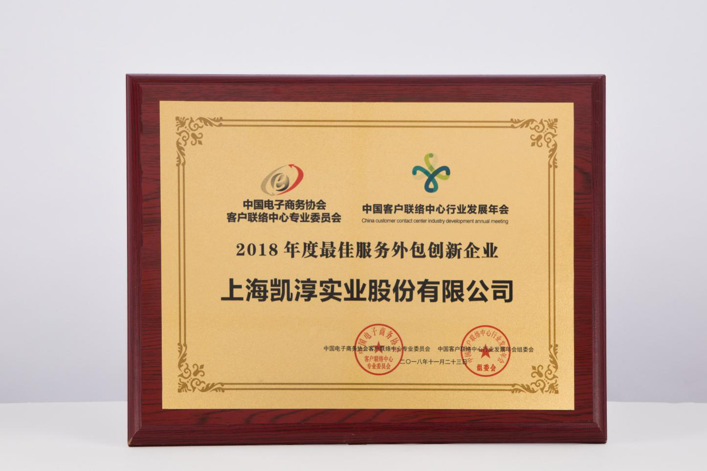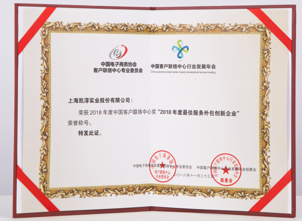 凯淳联络中心凭借专业化、数据化、智能化的创新践行 荣获“2018年度最佳服务外包创新企业”美誉
