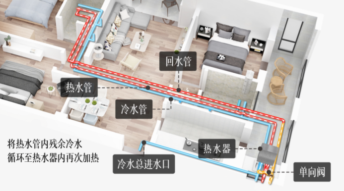 *需提前开启循环功能,由于循环水路到出水点具体安装可能因龙头、花洒或者支路产生一小截冷水。