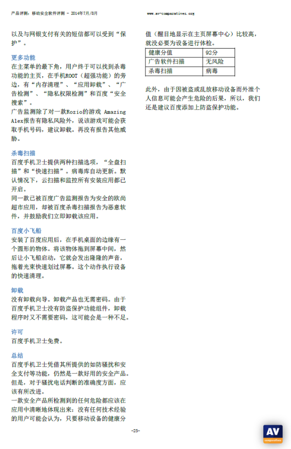 AV-C委婉指出百度手机卫士杀毒等五项“全不能”