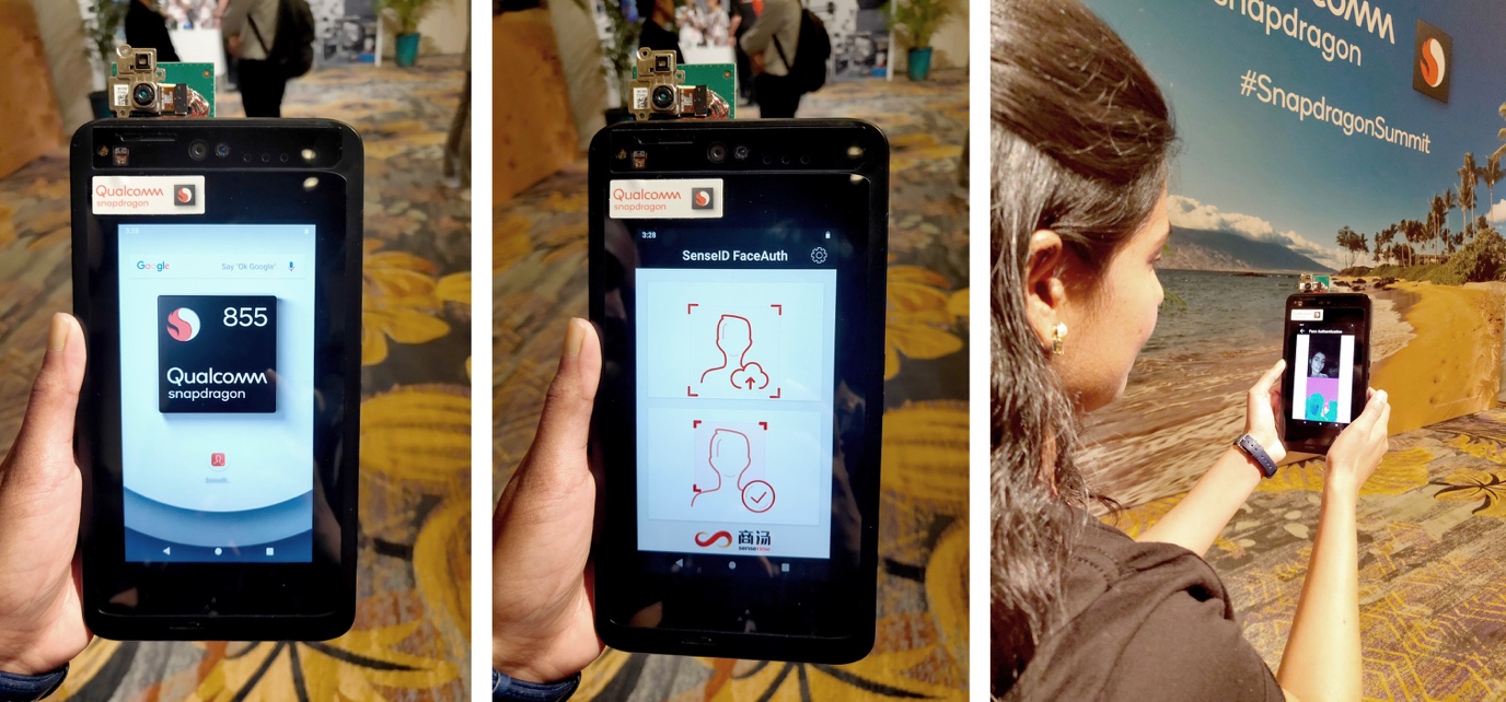 在本次峰会上展示的SenseID 3D ToF人脸认证方案,是商汤科技基于骁龙855 移动平台全新安全架构打造的全新解决方案。在上亿数据持续积累、深度学习算法不断进化、多种落地方案优化打磨的基础上,商汤科技利用该平台Qualcomm® Hexagon™ DSP性能以及SecureDSP全新架构,实现了算法安全应用。得益于骁龙855移动平台强大的AI性能和更精准的AI算法,SenseID 3D ToF人脸认证表现出极佳性能,不仅能够带给用户毫秒级的刷脸速度,还能应对不同光照下的解锁环境,更能满足用户支付级别的算法安全需求;同时,基于ToF 3D sensor的3D成像技术,该方案还支持3D人脸解锁、3D刷脸登录、3D刷脸支付等功能。
