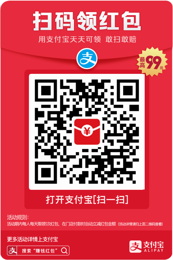 打开支付宝首页搜索“586204695” 立即领红包或扫描下图二维码: