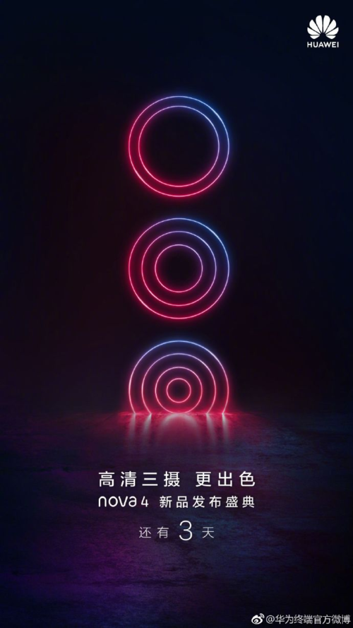 华为官方今天放出的海报,再次落实了nova4将有高清三摄。华为手机在拍照方面的实力有目共睹,相信全新的华为nova4也会给我们带来更多惊喜。