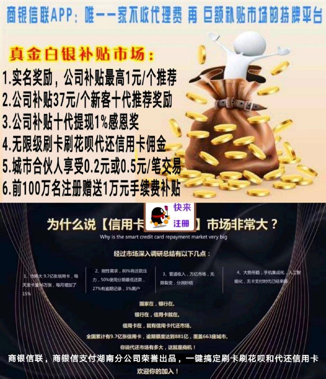 为什么说来做商银信联的信用卡刷卡和代还的业务可以让你年薪百万呢: