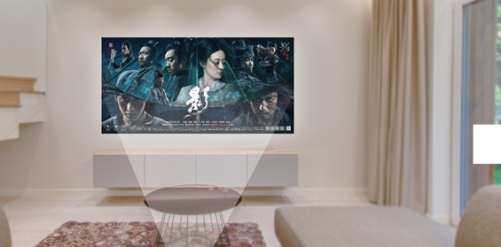 VM4标配了一键投影按键,只需轻轻一按,最大150英寸投影大屏即刻为你呈现,所见不凡。丰富的色彩饱和度,令画质堪比影院。并且VM4还支持上下40°自动梯形校正,让你观赏的更加自由。
