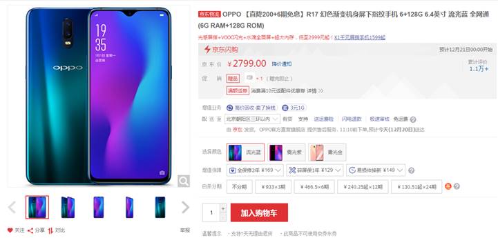 OPPO R17搭载高通首发骁龙670处理器,制程为10nm工艺,能耗更低发热更少;性能更高,OPPO R17搭载基于Android 8.1的Color OS 5.2,风格更加简洁流畅。对于喜欢简单操作的人,OPPO R17能耗、续航、配置方面对于喜欢打游戏、看剧、上网的人来说,绝对可以带的起来,目前京东售价仅为2799元。
