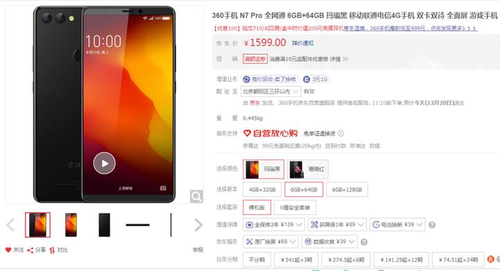 360手机N7 Pro采用了5.99英寸18:9的全面屏,外观配置双面玻璃材质,,造型简约握感绝佳,仅7.7mm的超薄机身,与红色的中框以及双面玻璃背屏相组合,造型更为简约大气。前置1600万+200万像素双摄像头,后置1200万+200万像素双摄像头,AI智能场景识别,能够自动为场景进行调色,让每一张照片都美的更加自然。AI智能防曝光,AI智能美颜算法能够进行针对化的美颜。