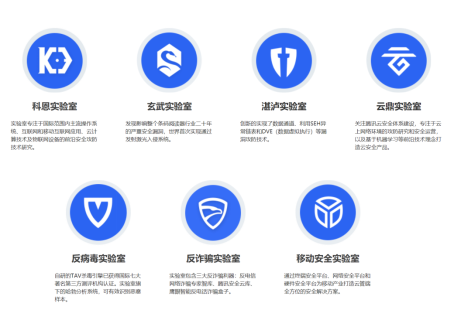 腾讯成立安全联合实验室矩阵,集合云鼎实验室、科恩实验室、玄武实验室、湛泸实验室、反病毒实验室、反诈骗实验室和移动安全实验室七大专业实验室致力于全面的互联网安全技术与攻防体系的研究及应用。