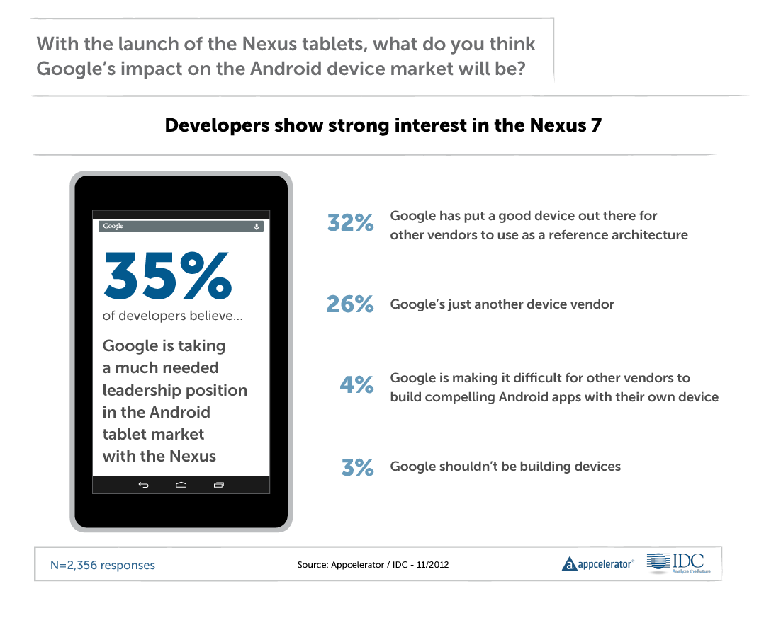 有35%的开发者认为,随着Nexus的推出,谷歌非常需要在安卓平板市场上取得领导地位。
