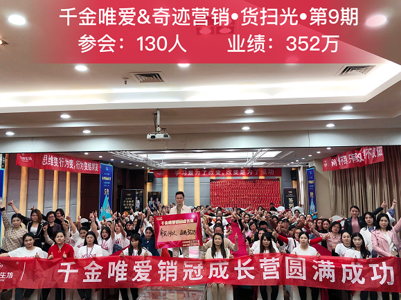 千金唯爱携手奇迹营销销冠成长营,参会人数130人,业绩达到352万……