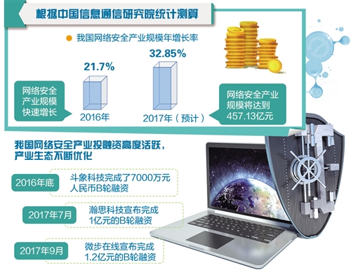“我国网络安全产业发展已进入崭新阶段,产业规模呈现高速增长态势。”中国信息通信研究院院长刘多介绍,当前网络安全产业正由产品主导向服务主导转型,态势感知、监测预警、云安全服务等新技术新业态层出不穷,网络安全技术密集化、产品平台化、产业服务化等特征不断显现。