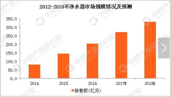 近年来,净水器成为了一种"热销"产品,这主要源于人们对水质污染问题的担忧。而根据中商产业研究院此前发布的《2018-2023年中国净水器市场前景及投资机会研究报告》对2018年中国净水器销售规模预估来看,中国的净水器市场在未来很长一段时间内都会保持健康的增长态势。
