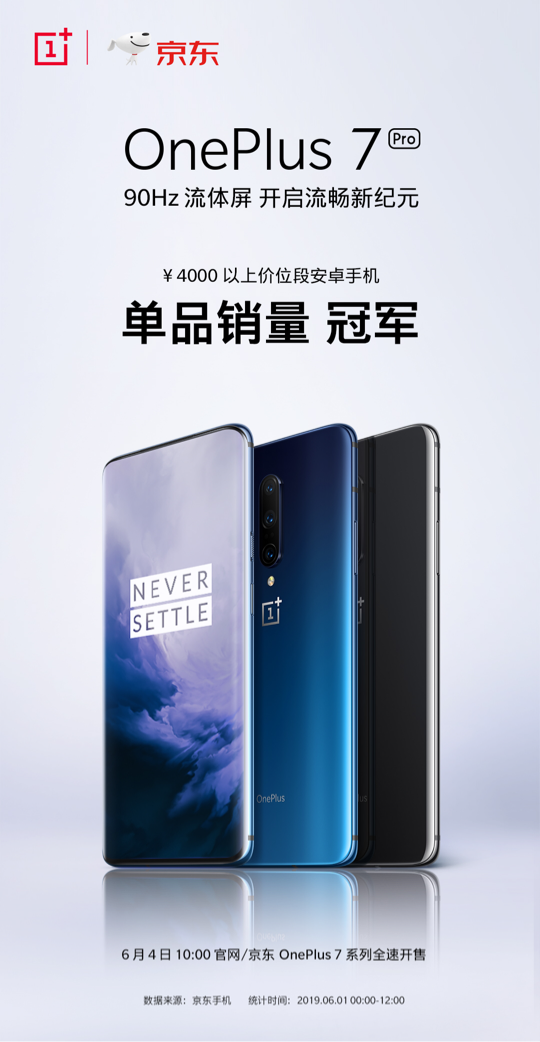 一加7 Pro一经发布便受到用户们的广泛欢迎,5月21日首销当天仅用时1分钟全网销售额便突破了1亿元,并成为京东全平台单品销量冠军。在6月1日的京东618全球年中购物节中,一加7 Pro也获得了“开门红”:斩获4000元以上价位段安卓手机的单品销量冠军。接下来一加7 Pro还将带来哪些惊喜?值得期待。
