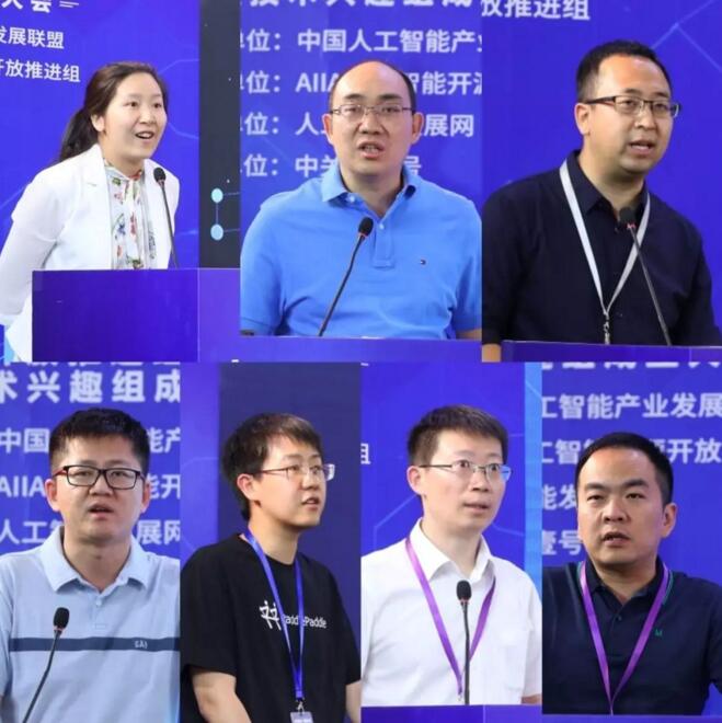 北京一流科技有限公司创始人袁进辉、商汤科技公司研发总监颜深根、机器学习平台架构师解浚源、虹软科技股份有限公司市场总监祝丽荣等代表技术兴趣组专家领取聘书。