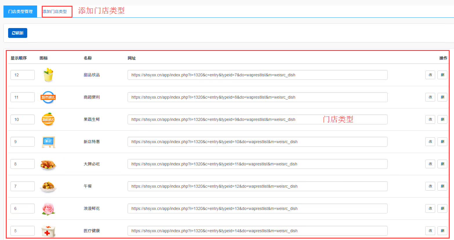 可根据平台入驻的门店进行合理分类,编辑统计和管理门店情况。功能支持添加和查看门店类型。