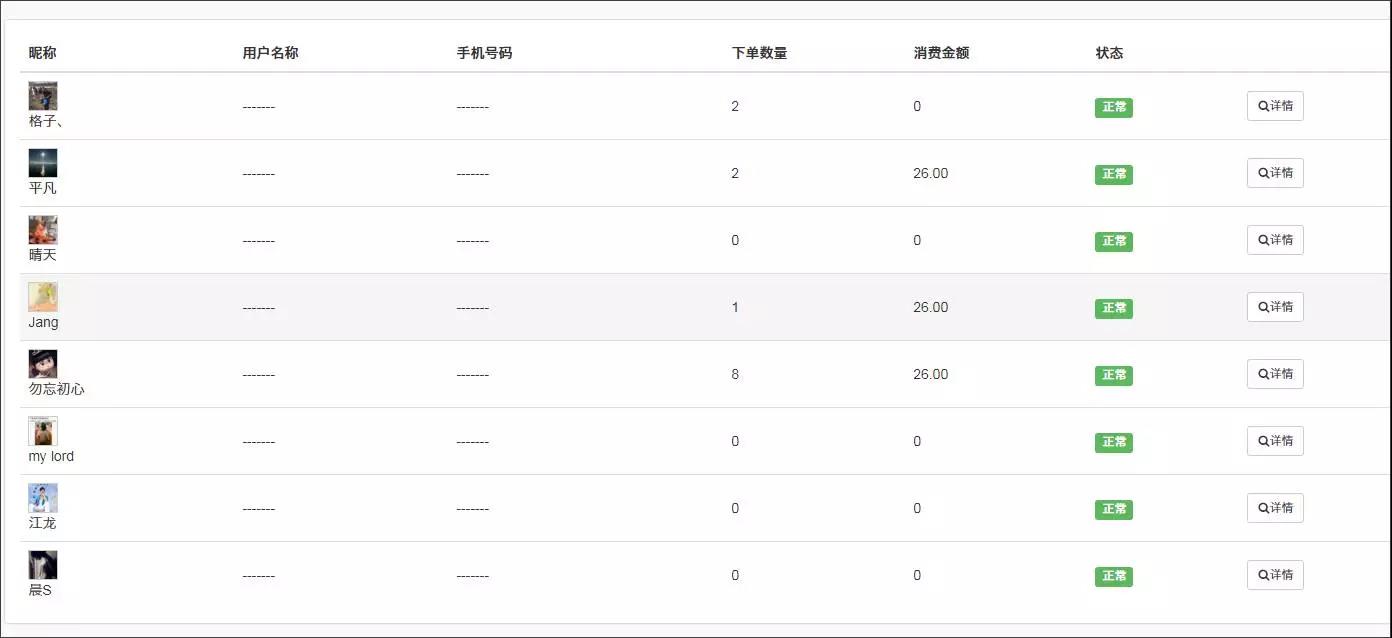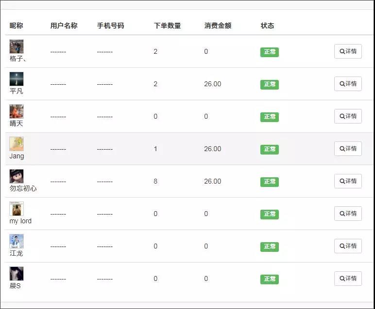 会员系统是维护老客户的有力武器,本平台支持会员管理及查看会员详情。