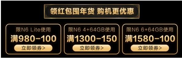 本次活动中,360 手机为消费者准备了多张红包满减券,使用红包满减之后更加优惠。其中有:针对N6 Lite的满980-100元优惠券,针对N6 4+64GB版本的满1300-150元优惠券,针对N6 6+64GB版本的满1580-100元优惠券。相应的机型使用这三种券之后,将能做到非常优惠甚至是前所未有的历史好价。