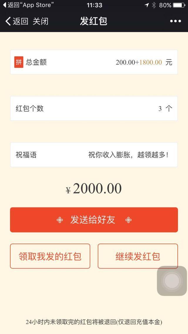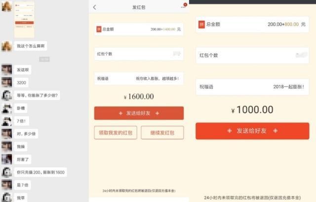 “天底下还有这样的好事儿!”笔者将膨胀红包分享大朋友群后,好友之间瞬间“炸锅”。朋友纷纷参与到“薅羊毛”大军中,没过多久就有一位朋友晒出了自己的膨胀红包,她充值后膨胀了8倍,从200元变成1600元!几轮下来,笔者发现红包的膨胀系数在从1.1-8倍不等,2倍以内的最多,膨胀2倍以上至10倍的较少。