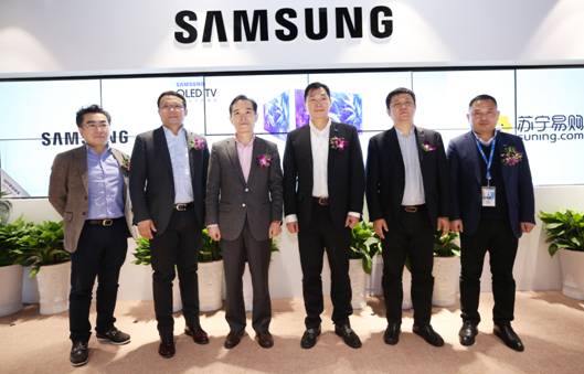 三星电子大中华区CE本部总裁晋渊铎、三星电子大中华区彩电营销事业部副总裁刘峻光、苏宁易购集团副总裁范志军、苏宁易购黑电公司总裁陶京海等重要嘉宾为全新QLED光质