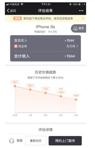 比起路边小摊贩的坐地压价,互联网上的二手交易平台更为正规。小编带着手机回到家里后,通过微信公账号关注焕熊,在线上进行手机估价。按照手机真实成色把相关信息提交之后,焕熊给出的评估结果为1544元。因为不确定交易流程,小编打通官方电话咨询,工作人员表示,只要按照手机的真实情况在线估价,程序估价的价格和人工质检结果相差不多。