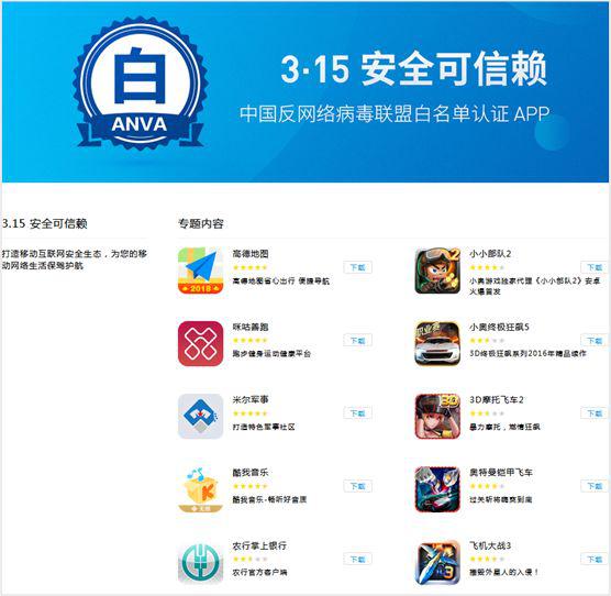 二、2018年"3·15白名单APP专题"应用商店地址汇总