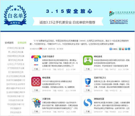 一、2018年"3·15白名单APP专题"Web网站地址汇总