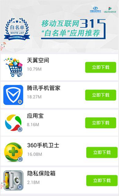 网民可通过华为手机、小米手机、OPPO手机、VIVO手机、魅族手机、酷派手机等手机自带的应用商店客户端进入"3·15白名单APP专题"页面,也可通过360手机助手、百度手机助手、PP助手、小米应用商店、优亿市场、木蚂蚁市场、中国移动MM商场、中国电信天翼空间、华为应用市场、魅族应用商店、中国电信爱游戏、OPPO软件商店、VIVO应用商店、应用汇、豌豆荚、安智市场、腾讯手机管家、酷派应用商店、通付盾、瑞星等20家应用商店、安全软件的网站或APP客户端进入"3·15白名单APP专题"页面,下载并使用"白名单APP"。