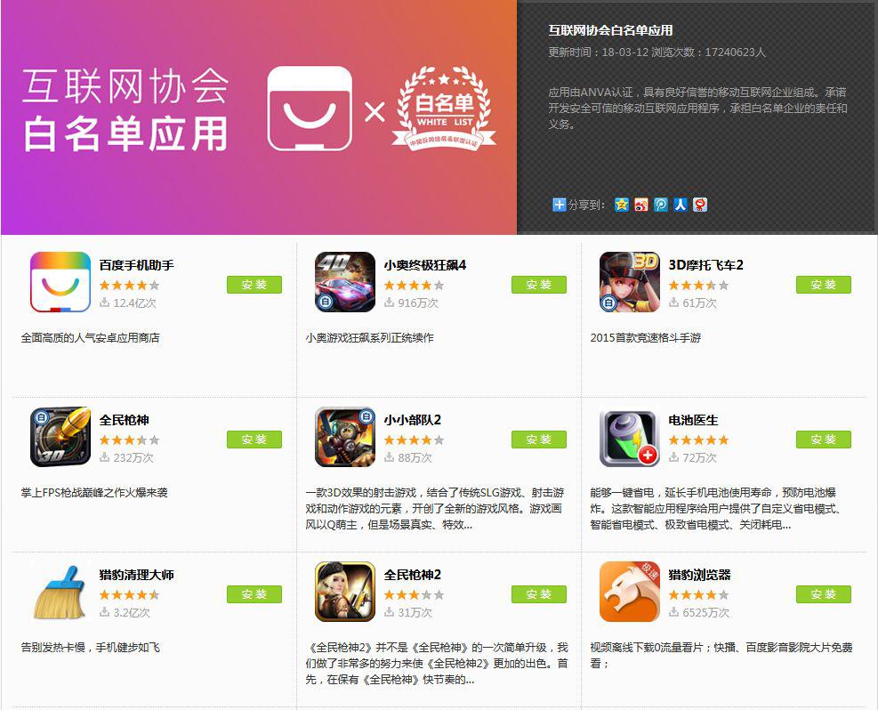 1、百度手机助手白名单APP专题: