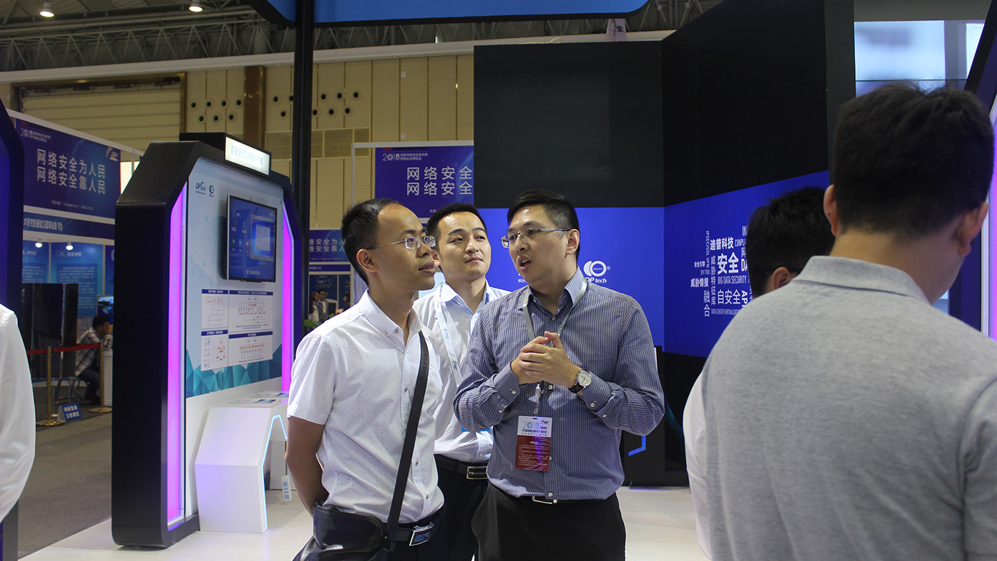 在展会现场,迪普科技展示了“慧眼自动化安全风险监测平台”、“安全威胁态势感知平台”、“自安全网络”、“安全智能分支机构”等网络安全技术解决方案,并展示了在政府、金融、电力、运营商等行业的应用成果。