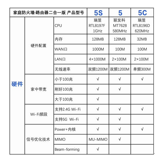 360家庭防火墙路由器5是“标配版”,它在核心硬件配置上,主要由580MHz联发科MT7628 CPU、128G内存,100M的WLAN口组成,无线速率可达双频1200M。在功能上,儿童守护、老人守护、智能硬件防护等功能也一应俱全,非常适合普通家庭。