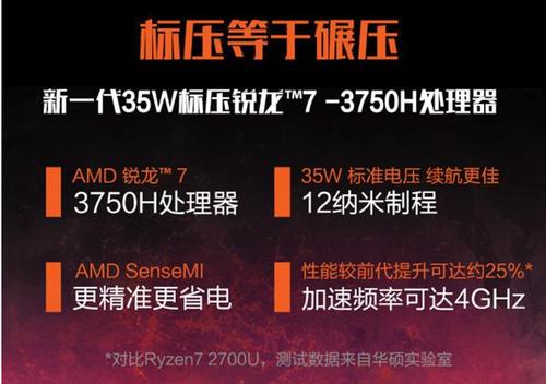 继首款搭载35W标压锐龙5 3550H的飞行堡垒6s之后,华硕又抢先推出了基于锐龙7 3750H的高性能游戏本飞行堡垒7,4核心8线程,拥有35W标准电压TDP,基准频率2.3GHz,可自动超频至4.0GHz,性能较前代提升可达约25%,同时支持AMD SenseMI技术,可在高清画质下畅玩各类3A游戏大作。