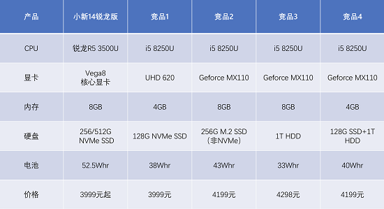 同样是“主流配置“,我们就拿联想一款小新14锐龙版和几款热门的4000价位段机型作下对照,看看究竟什么才是性价比。