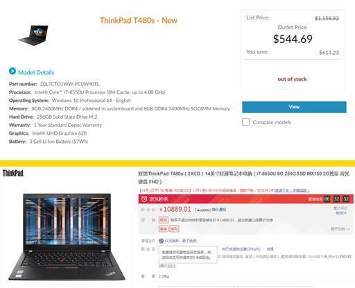 拿ThinkPad T480s来说,联想美国官网折扣后价格为3778元,而国内价格则为10889元,这个差距确实太大了,甚至让人感到惊讶。