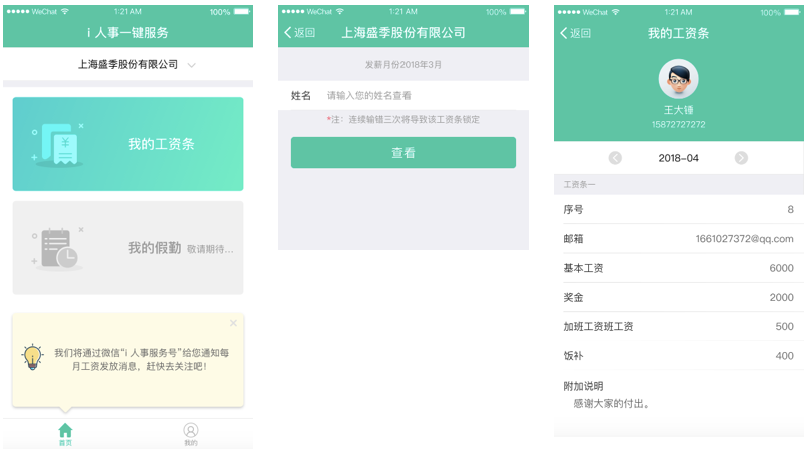 点击短信中的链接,输入姓名进行安全验证,即可查看工资条