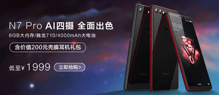 360手机N7 Pro搭载了当前高通家族最为热门的骁龙710处理器,有6+64GB、6+128GB两种内存版本可选,售价分别为1999元和2299元。4000mAh大容量电池。正常用机环境下,可轻松续航两天,同时支持18W快充技术,20分钟可充电30%,100分钟可充满。