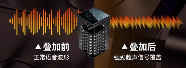 然而,融入AI的防录音产品通过自研核心干扰算法,让超声波与语音信号的叠加,能有效干扰手机、录音笔、监听器、微型窃听器等各类拾音设备,甚至影响视频录制中的音频内容。