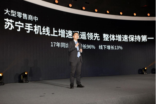 2017年中国智能手机市场年总出货量为4.5亿部,较2016年下跌6.1%,这是中国首次出现智能手机年总出货量下滑的情况。但与此同时,苏宁手机业务却逆势增长,整体增速保持行业第一,2017年线上增速达到了96%,线下为13% ,远超行业水平。