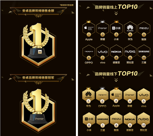 除了增长数据外,还有一个令人欣喜的现象,国产手机也在本次苏宁蜜蜂节中强势崛起。在苏宁公布的榜单中,小米成为安卓品类双线销售金额冠军,荣耀则是安卓品类双线销量冠军,华为更是位居线下销量榜首。