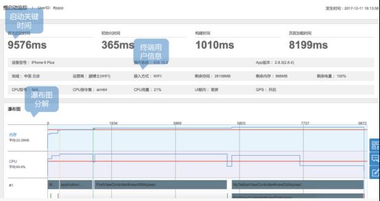 进入详情页面可查看:首次启动、冷启动、热启动的单样本详细信息,包含启动时间、终端用户信息、瀑布图分解。(慢启动单样本详情页可根据User ID定位终端用户)